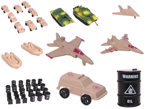 Idealny komplet dla małych miłośników wojen. Baw się samemu lub z innym miłośnikiem tej zabawy. Opracuj scenariusz ofensywny oraz defensywny.