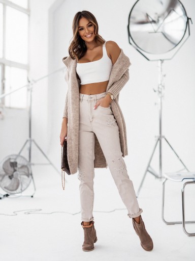 KARDIGAN Z KAPTUREM ALICE BEŻOWY - BEIGE