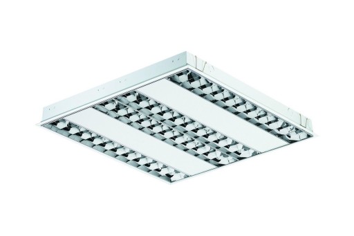 Oprawa do wbudowania o wysokości tylko 55 mm. Przeznaczona do stropów podwieszanych 600 mm. Oprawa ze świetlówkami. Posiada wgniecenia, lekkie otarcia.