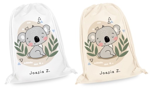 Imienny worek z piękną, modną, kolorową grafiką to idealne rozwiązanie na przechowywanie kapci i ubranek dziecka w żłobku, przedszkolu czy szkole.