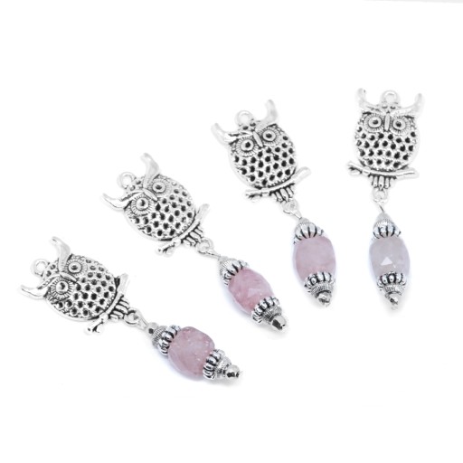 Elegancka zakładka do książki z zawieszką w kształcie sowy z dodatkiem kwarcu truskawkowego oraz srebrnego hematytu.