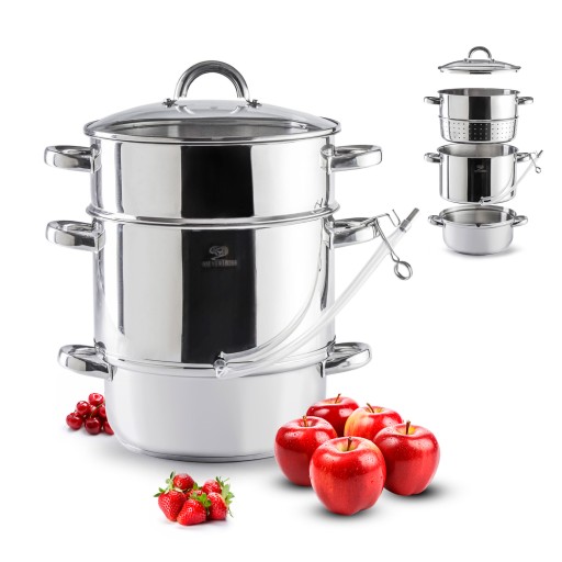 Wszystkie trzy garnki, z których składa się sokownik zostały wykonane z wytrzymałej stali nierdzewnej. Materiał ten jest niezwykle odporny na różnego rodzaju uszkodzenia mechaniczne, zarysowania, wybrzuszenia i odkształcenia. Jest także wysoce odporny na rdzewienie.