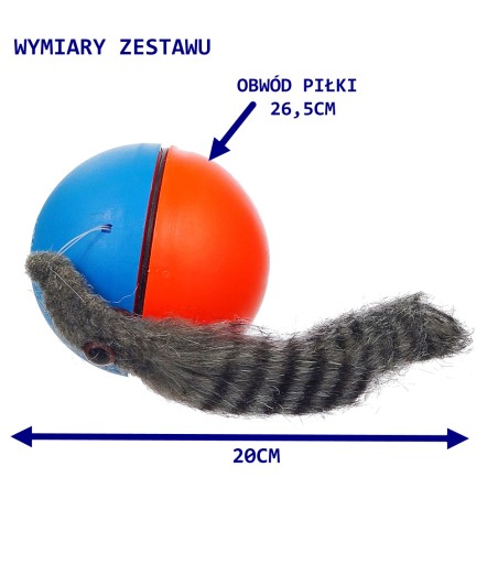 Biegająca piłka z ogonkiem, ruszająca się w każdym nieregularnym kierunku. Idealna dla aktywnych zwierzaków . Zabawka na dwie baterie R6, z wbudowaną uszczelką umożliwiając zabawę także w wodzie basenach , stawach wszędzie tam gdzie nasze pupile lubią zabawę.