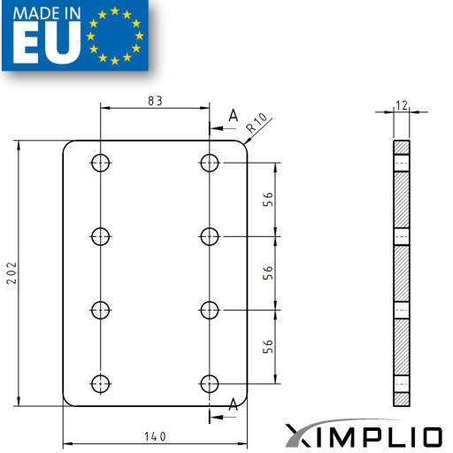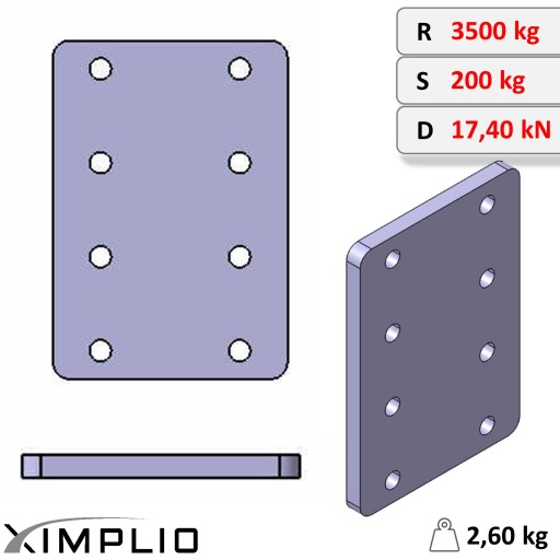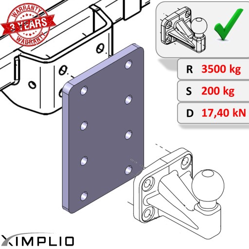 Blacha 4x83 mm wyposażona jest w cztery rzędy otworów, co umożliwia zamocowanie we wszystkich hakach z rozstawem otworów do przykręcenia kuli - 83x56 mm.