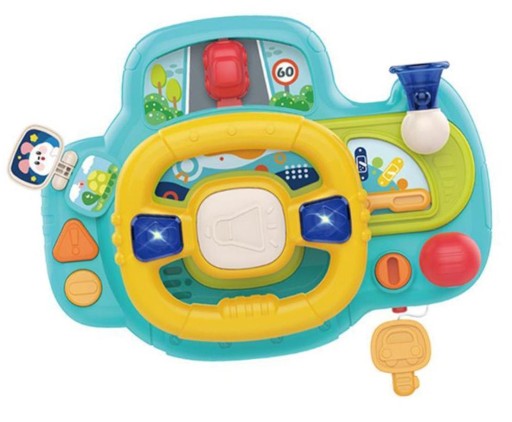 [ZABAWA EDUKACYJNA] Zabawka wyposażona jest w przewijany ekran, który przedstawia poruszanie się po drodze. Jest to doskonały sposób, aby przybliżyć małego dziecka do zastosowania pojazdu oraz zasady ruchu. [FUNKCJONALNOŚĆ I ZABAWA] Kierownica pozwalająca na dodatkowe znaczenie dzięki realistycznemu wyglądowi i zabawnym funkcjom. Wciśnięcie przycisku muzycznego uruchamia melodii, a kolejne naciśnięcie powoduje, że następuje muzyka.