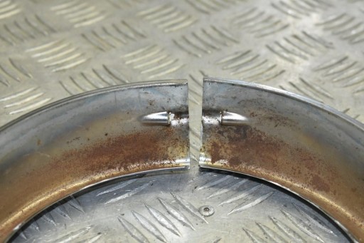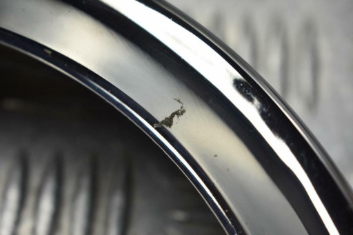 Oryginalna ramka chrom lampy przód 7 cali, używana w stanie dobrym, posiada drobne zarysowania oraz niedużą wgniotkę, uszkodzenie widoczne na zdjęciach.
