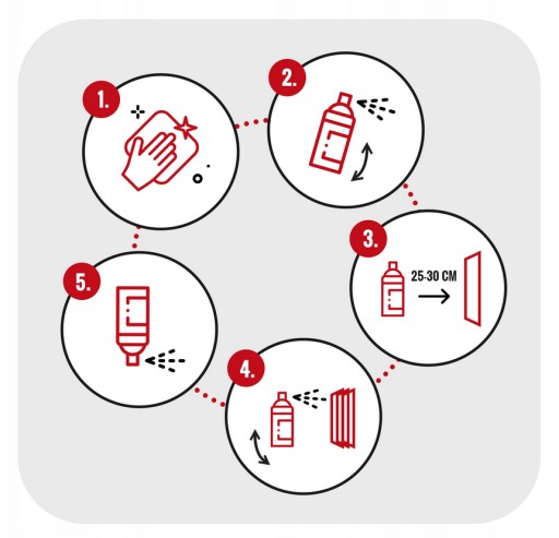 Forma sprayu sprawia, że farba jest niezwykle łatwa w aplikacji. Pozostawia gładką warstwę, bez smug, nawet w przypadku kilkukrotnej aplikacji.