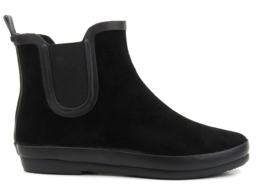 Botki damskie marki Potocki zostały wykonane z zewnątrz z materiału gumowego oraz ze skóry ekologicznej zamszowej w klasycznym, czarnym kolorze.