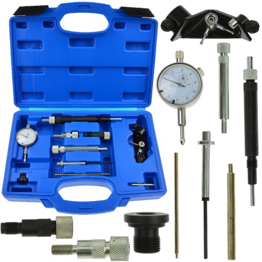 Przyrząd do ustawiania pomp wtryskowych BOSCH / LUKAS / CAV Przyrząd przeznaczony do precyzyjnego ustawienia bądź sprawdzenia początku wtrysku w pompach wtryskowych rotacyjnych BOSCH, LUKAS, CAV. Obsługiwane pompy wtryskowe stosowane w autach marek: Fiat Lancia Alfa Romeo VW-Audi BMW Ford Renault Rover Iveco Mitsubishi Isuzu i inne > Zawartość zestawu: czujnik zegarowy 0-8mm uchwyt do wyznaczania położenia tłoka uchwyt czujnika do pomp LUKAS CAV redukcja M8 x M12 oprawa czujnika M10 krótka oprawa czujnika M8 krótka oprawa czujnika M8 długa przedłużka do uchwytu nr 3 przedłużka końcówki pomiarowej krótka przedłużka końcówki pomiarowej długa