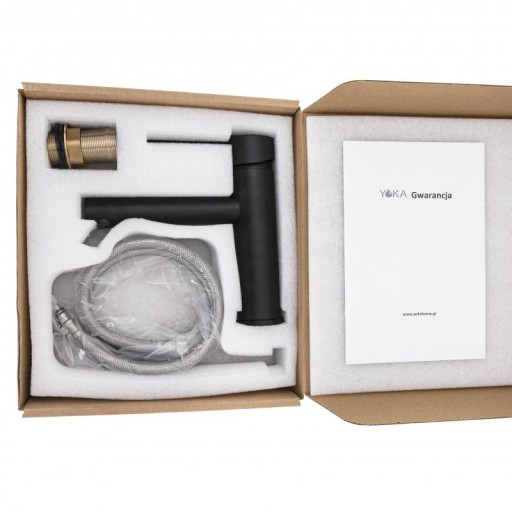 Zestaw zawiera 2 wysokiej jakości wężyki w oplocie ze stali nierdzewnej o długości 50 cm ze standardowym przyłączem 3/8 cala oraz komplet akcesoriów do montażu baterii.