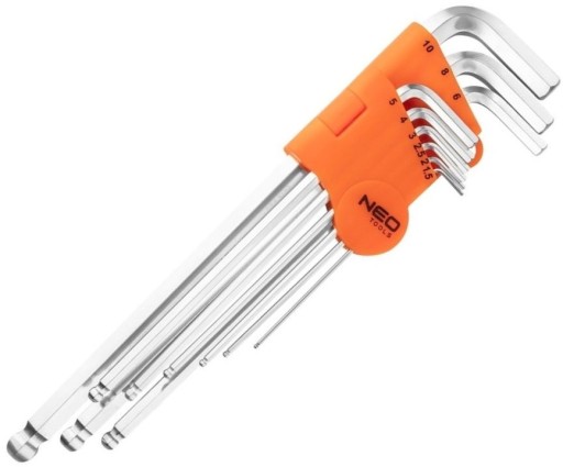 Zestaw kluczy sześciokątnych NEO (nr ref. 09-525) wykonany ze stali chromowo-wanadowej, zgodnie z normą DIN 911. Zestaw zawiera 9 kluczy w rozmiarze od 1.5 do 10 mm w praktycznym opakowaniu. Kuliste końcówki o kącie roboczym do 30° zwiększają funkcjonalność narzędzi. ISO 2936 i 25-letnia gwarancja producenta potwierdzają wysoką jakość narzędzi. Marka NEO spełnia oczekiwania profesjonalistów.