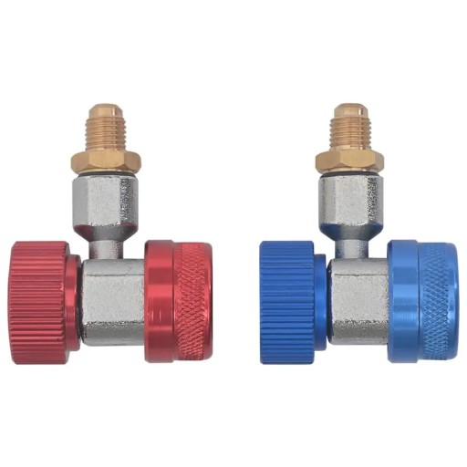 Te łatwe w użyciu szybkozłącza służą do podłączania złączki węża 1/4" SAE do samochodowego zbiornika chłodniczego R134A. Najwyższej jakości wykonanie zapewnia łatwą konserwację, trwałość, a także odporność na korozję. Dwa dodatkowe złącza mogą połączyć zawór i gwinty wewnątrz, dzięki czemu można łatwo włączyć/wyłączyć i uniknąć wycieku freonu. Zestaw jest łatwy w obsłudze, wystarczy podłączyć dolne części do portu serwisowego R134A, połączyć adapter ACME z wężem czynnika chłodniczego i włączyć/wyłączyć przełącznik u góry. Przesyłka obejmuje niebieskie szybkozłącze na stronę niskiego ciśnienia i czerwone na stronę wysokiego ciśnienia.