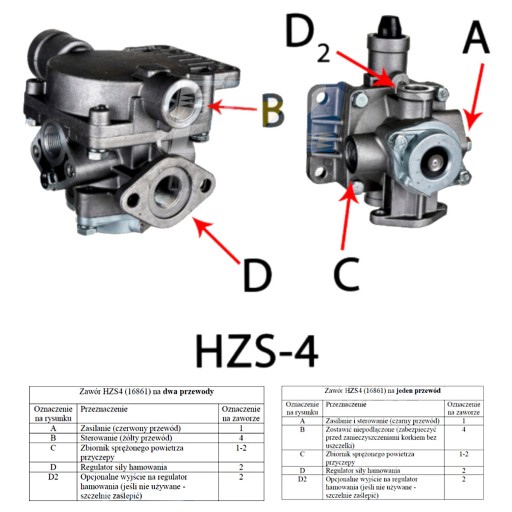 ✅ Zawór sterujący HZS-4 + Regulator siły hamowania 4-zakresowy ZESTAW to zestaw elementów układu pneumatycznego przyczepy.