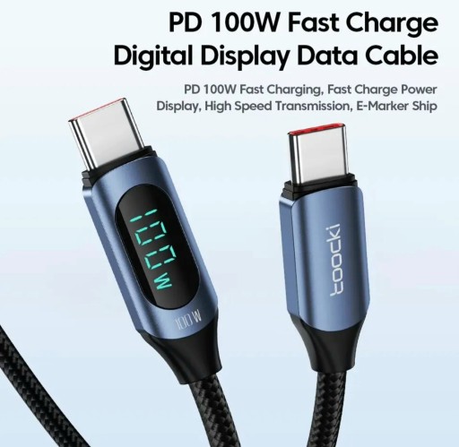 TOOCKI kabel USB-C Type-C 100W PD QC 2 metry + MIERNIK LCD