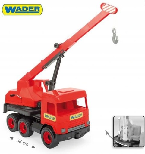 Middle Truck Dźwig firmy Wader to solidnie zaprojektowana i świetnie odwzorowująca rzeczywisty pojazd budowlany zabawka. Duży, czerwony dźwig o długości 43 cm posiada ruchomy wysięgnik i opuszczany hak do podnoszenia i przemieszczania różnych elementów budowlanych. Tego właśnie potrzebują mali miłośnicy sprzętu budowlanego. Doskonale nadaje się do zabawy zarówno w domu, jak i w piaskownicy. Całość wykonana jest z lekkiego, ale wytrzymałego tworzywa sztucznego odpornego na warunki atmosferyczne. Przy użyciu Middle Truck Dźwig nieograniczona wyobraźnia dziecka pozwoli zbudować najbardziej skomplikowane budowle. Zabawka wspiera twórcze myślenie oraz rozwój umiejętności manualnych i koordynacji ruchowej. Zapraszając do zabawy inne dzieci, nasza pociecha nauczy się współpracy w grupie oraz dzielenia się zabawkami. Będzie to również doskonała okazja do przekonania rówieśników do własnych pomysłów bądź pójścia na kompromis. Middle Truck Dźwig to bezpieczna zabawka przeznaczona dla dzieci powyżej 3 lat. Zapewni im zabawę na długi czas.