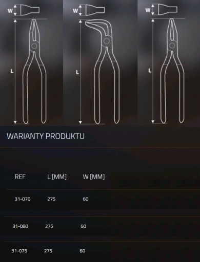 Cęgi dekarskie proste 180 NEO (nr ref. 31-070) o długości 275 mm i szerokości szczęk 60 mm. Wykonane z wysokiej jakości stali chromowo-molibdenowej o twardości na poziomie 28-32 HRc, co zapewnia długą żywotność narzędzia. Pokrycie rękojeści okładziną PCV uniemożliwia wyślizgiwanie się z rąk, co poprawia komfort pracy. Marka NEO spełnia oczekiwania profesjonalistów.