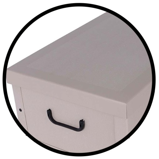 Ozdobne pudełko kartonowe z pokrywą do przechowywania. Praktyczne, funkcjonalne, zaprojektowane z dbałością o najdrobniejsze szczegóły. Wykonane z wysokiej jakości, wytrzymałego, kaszerowanego kartonu z połyskiem. Ścianki boczne spięte plastikowymi nitami. Solidne uchwyty z PCV ułatwiają przenoszenie. Produkt zaprojektowany tak, aby maksymalnie ułatwiać montaż, a jednocześnie gwarantuje najwyższą estetykę wykonania.