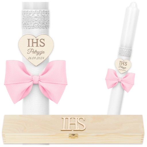 Świeca Komunijna pudełko drewno Świeca do Komunii Imienna Świeca na Komunię
