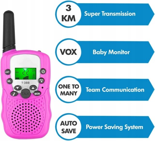 Krótkofalówka T-388 idealnie sprawdzi się podczas rodzinnych wyjazdów, spacerów , zabaw z przyjaciółmi itp.