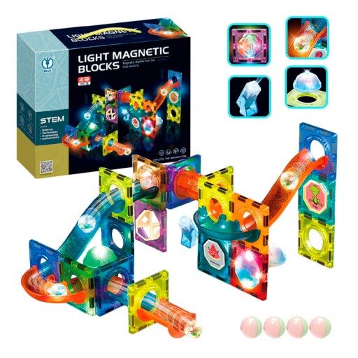 Магнитные блоки - Магнитные блоки со светящейся шариковой дорожкой 49 элементов