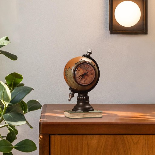 [Delikatna stylizacja]: Delikatna figurka w kształcie kuli ziemskiej w stylu vintage, doskonałe wykonanie, jest nie tylko ozdobą artystyczną, ale także dekoracyjnym zegarem stołowym, doskonałym do dekoracji domu.