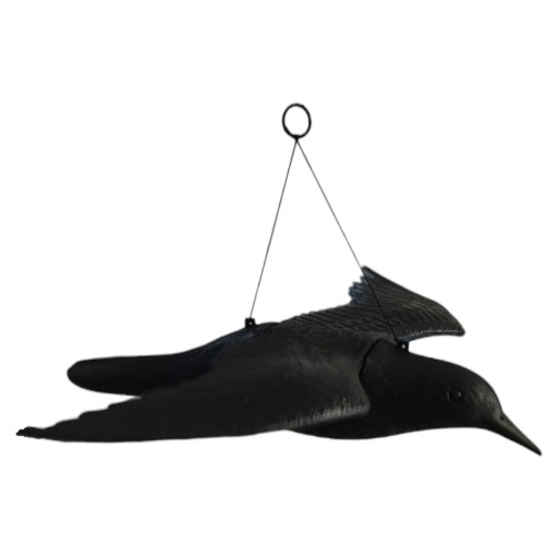 - Jego kształt, stosunek wielkości i kolor doskonale imituje prawdziwego kruka i dlatego jest uważany za najlepszy odstraszacz ptaków.
