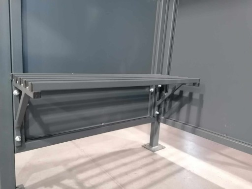 Wiata posiada ławkę, wykonaną także z profili metalowych, która zapewnia podstawową funkcjonalność, a jednocześnie jest bardzo wytrzymała.
