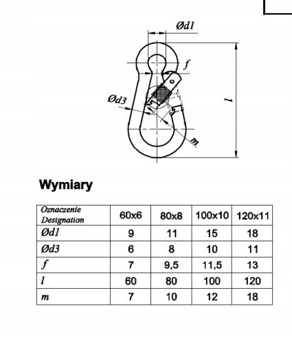 Karabińczyk do lin OCYNK DIN5299C 8X80
