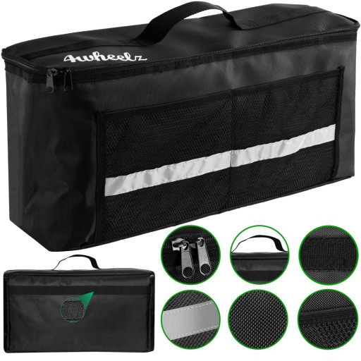 Ulm to doskonały organizer samochodowy zapewniający ład i porządek w każdym bagażniku. Jest solidnie wykonany z materiałów najwyższej jakości z zachowaniem dbałości o każdy detal. Dzięki materiałowi OXFORD 1680D i 420D ma zwiększoną wytrzymałość i odporność na uszkodzenia oraz jest wodoodporny. Torba samochodowa posiada wygodną rączkę do przenoszenia, mocne przeszycia, solidny zamek błyskawiczny oraz tylny długi rzep, dzięki czemu możemy ją przyczepić do tylnej ściany bagażnika. Oprócz pojemnej wewnętrznej komory Ulm posiada zewnętrzne osiatkowane kieszonki. Komora została usztywniona specjalną piankę EPE, dzięki czemu zawartość organizera jest zabezpieczona w transporcie. Dodatkowo w trosce o bezpieczeństwo torba została wyposażona w odblaski. Model po spakowaniu zajmuje bardzo mało miejsca.
