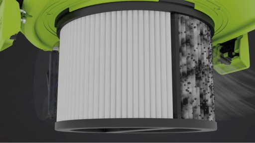 Automatycznie czyszczenie filtra przeprowadzane jest co 45 sekund, w związku z tym filtr utrzymuje swoją wydajność przez dłuższy czas. Gwarantuje to nieprzerwaną pracę oraz maksymalną moc ssącą.