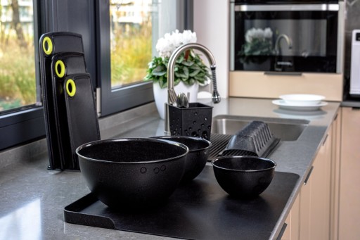 Zestaw 5 misek kuchennych. Cechuje je lekkość, unikalny kształt, estetyczny wzór oraz uniwersalne zastosowanie. świetnie sprawdzają się podczas codziennych obowiązków w kuchni. Miska odporna jest zarówno na wysokie jak i niskie temperatury