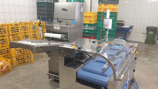 Produkt jest umieszczany w uprzednio rozdmuchanym woreczku i odkładany na poprzecznej taśmie podającej. W kolejnych krokach następuje odsysanie z woreczka nadmiaru powietrza i zamknięcie klipsem drucianym z wcześniej naniesioną datą poprzez drukarke termiczną. Gotowy, zamknięty w ten sposób produkt może być następnie zdejmowany ręcznie lub gromadzony na stole obrotowym.