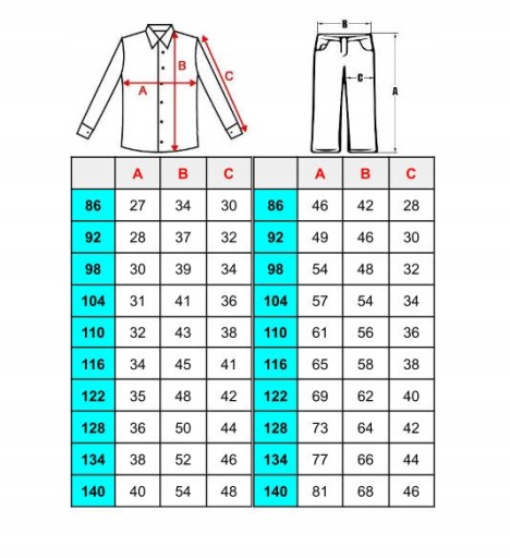 ✅ Skład zestawu: koszula 65% bawełna 35% poliester , spodnie 100% bawełna