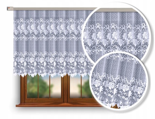 Firana żakardowa wykonana z wysokiej jakości przędzy nabłyszczanej .