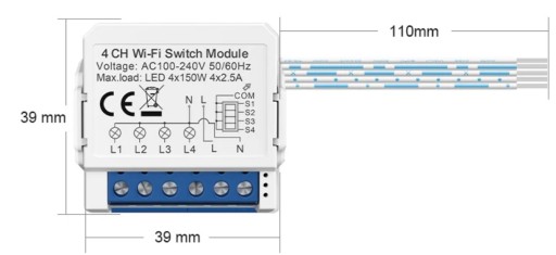 DOPUSZKOWY WŁĄCZNIK WiFi WRAZ Z PRZEKAŹNIKIEM 4x2,5A, 4x150W