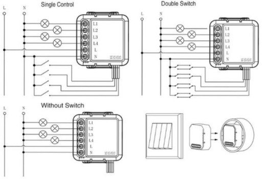 - Przełącznik - użyj podłączonego do modułu przełącznika. Przełącz szybko klawisz przełącznika 6 razy. Nie musisz wyjmować modułu z puszki, aby go zresetować.
