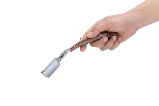 Stylowa brzytw nie tylko spełnia swoje funkcje, ale także przyciąga wzrok swoim wyjątkowym designem. Wyposażona w ergonomicznie zaprojektowaną rączkę, wykonaną z wysokiej jakości drzewa, zapewnia wygodę i pewny chwyt podczas golenia.