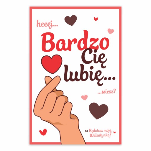 KARTKA WALENTYNKOWA - HEJ! BARDZO CIĘ LUBIĘ! WIESZ? - SERDUSZKO
