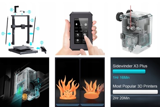 Sidewinder X3 Plus może drukować z prędkością do 300 mm/s przy zachowaniu precyzji 0,1 mm, dzięki czemu można szybko i wydajniej tworzyć modele wysokiej jakości.