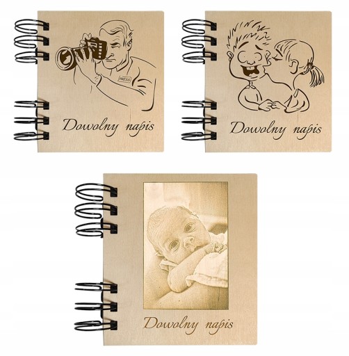 Na innych naszych aukcjach lub w zestawach powyżej można zamówić drewniane mini albumy do naszych zdjęć typu polaroid 8,3x10,2 i 7,5x10,2 z grawerowanym laserowo napisem, fotografią, grafiką.