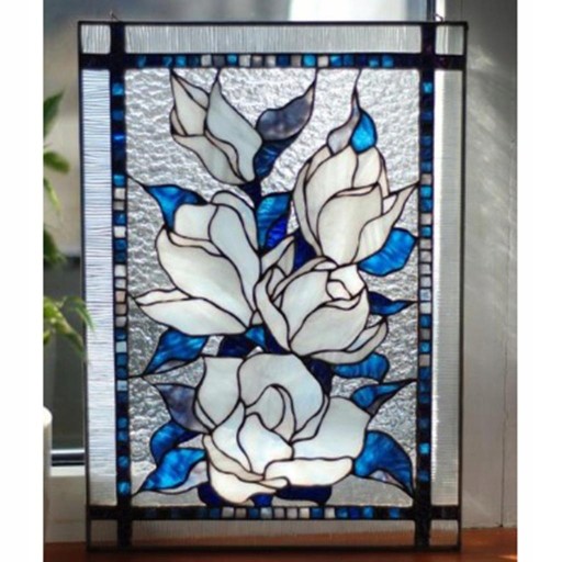 Witraż Prostokątny Panel Okienny Dekoracja ścienna Białe Kwiaty