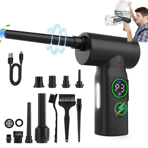 - ⚡ - 【Odpylacz powietrza】: Poczuj natychmiastową czystość dzięki nowo zdefiniowanemu odpylaczowi na sprężone powietrze, który usuwa 99% kurzu w zaledwie 1 sekundę. Dzięki mocnej technologii silnika, elektrycznemu odpylaczowi powietrza, maksymalna prędkość 110 000 obr./min, czyści każdy zakątek. Odkurzacz powietrzny to doskonały gadżet do czyszczenia, który jest dobrym zamiennikiem puszki ze sprężonym powietrzem.