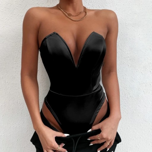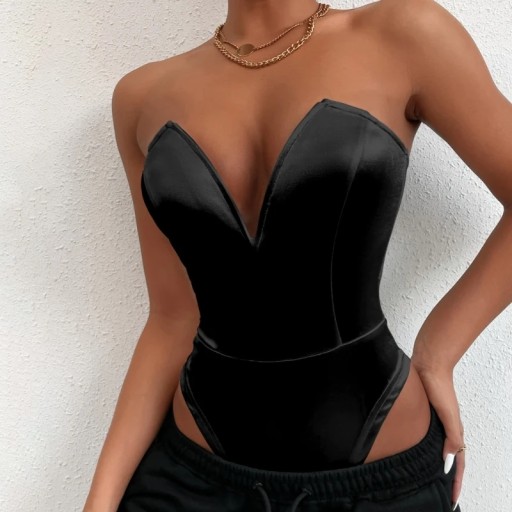 Атласный однотонный комбинезон с вырезом в форме сердца и облегающим комбинезоном