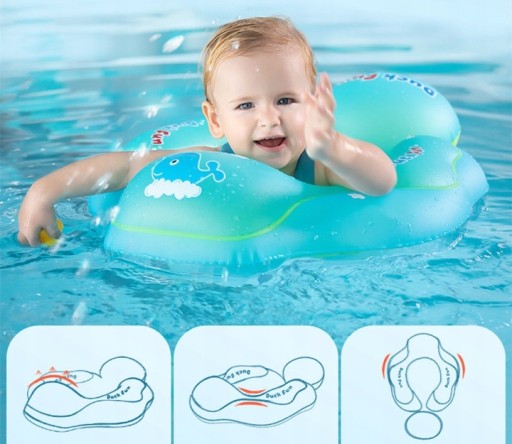 Nadmuchiwany pierścień do pływania dla niemowląt wykonany jest z wysokiej jakości materiału PCW, wodoodporny, nietoksyczny, intymny kontakt ze skórą dziecka, bezpieczny i bezpieczny.
