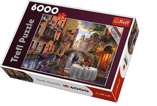 Puzzle 6000 elementów z obrazem przedstawiającym restaurację nad weneckim kanałem. Po ułożeniu powstanie obrazek o wymiarach 136x96 cm. Wysoką jakość, nasycenie kolorów i bezpieczeństwo układania zapewnia wykorzystanie materiałów ekologicznych.