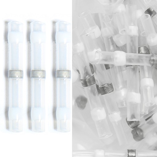 Zestaw szybkozłączek z cyną w rurce termokurczliwej do naprawy i łączenia przewodów.