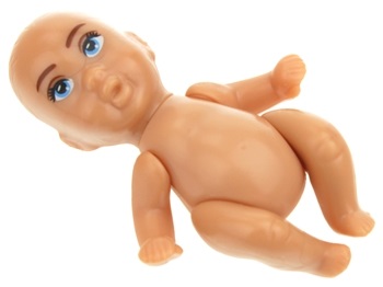 - brzuch lalki jest otwierany, można wyjąć bobasa i włożyć go z powrotem do brzuszka