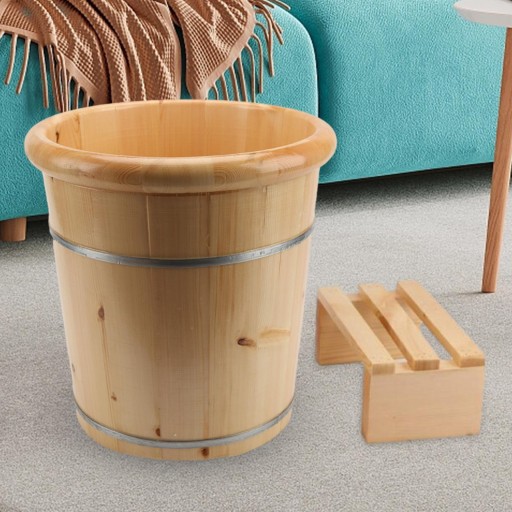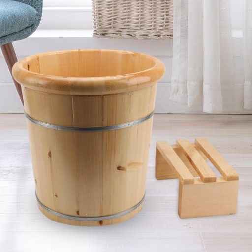 [Foot Spa]: Drewniana wanna do stóp. Możesz zanurzyć stopy w gorącej wodzie, aby zmęczenie i napięcie dnia zniknęły i je zrelaksowały.