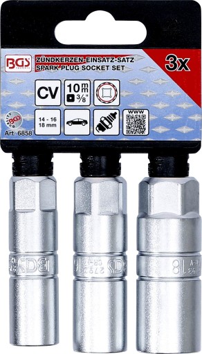Klucze nasadki do świec 14+16+18mm Cienkie, zestaw nasadek BGS-Germany