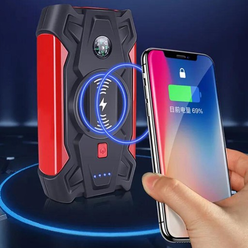 ▶️Może być stosowany jako awaryjne źródło zasilania rozrusznika w pojazdach z silnikiem Diesla i benzyną 12 V, a także obsługuje bezprzewodowe ładowanie telefonów komórkowych.
